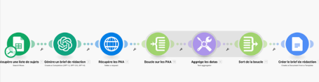 Ce scénario offre une solution efficace pour gérer un grand volume de correspondance professionnelle, en combinant l'intelligence artificielle de ChatGPT pour la génération de contenu et Google Sheets pour l'organisation et le suivi des interactions.