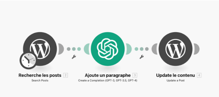 Ce scénario automatise la publication de contenu depuis un blog WordPress vers plusieurs réseaux sociaux en utilisant ChatGPT pour optimiser et adapter le contenu. Voici les principales étapes du processus :